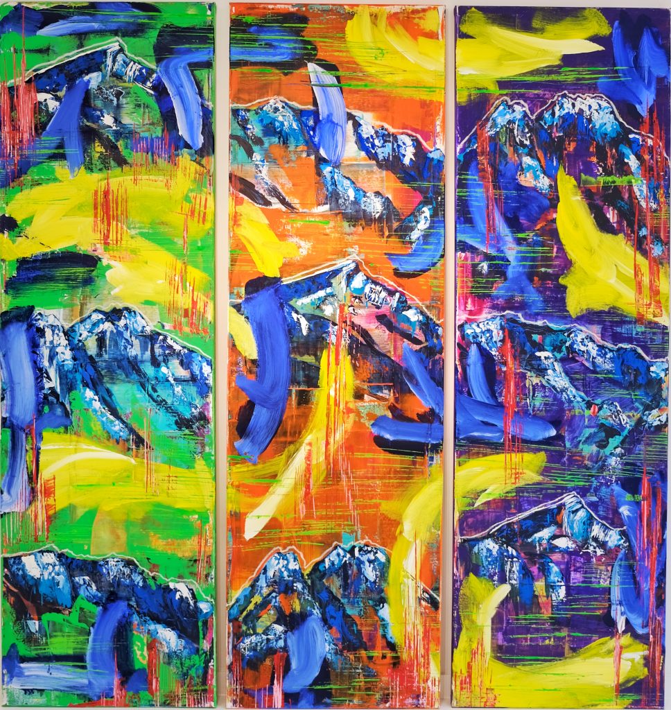 Die Berglandschaften der Heimat erscheinen in intensiver Farbigkeit. Auf den ersten Blick wirken sie leicht und beinahe unwirklich. Unter dieser Oberfläche zeigen sich Spuren von Isolation und Begrenzung, die in den letzten Jahren deutlicher wurden. Die Serie wird in der Galerie Sani Kneitinger in Garmisch-Partenkirchen kontinuierlich fortgeführt.